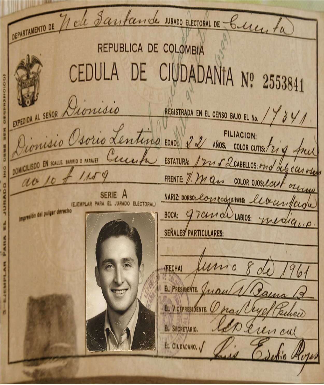Dionisio Osorio Lentino. Así se llama. Cartagenero. 82 años. Tal vez italianos el abuelo materno o la mamá.